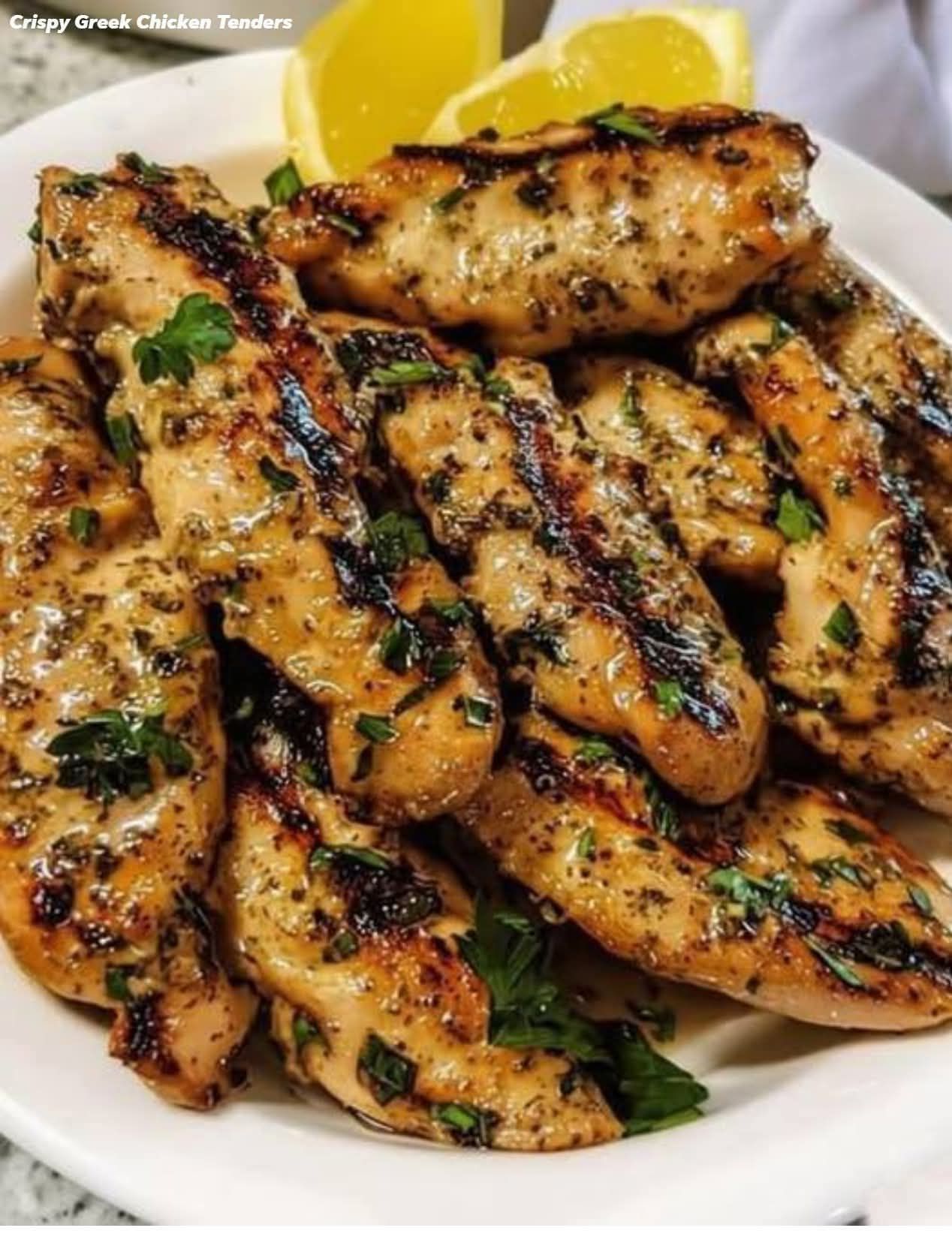 In a bowl, combine Greek yogurt, minced garlic, lemon juice, olive oil, oregano, thyme, paprika, salt, and pepper. Add the chicken tenders and coat well. Cover and refrigerate for at least 30 minutes (or up to 2 hours).