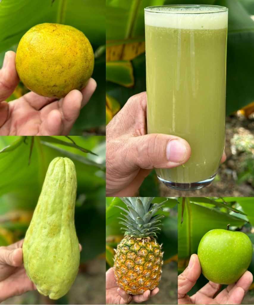 - Add the pineapple peel, green apple, chayote, and celery to a blender.